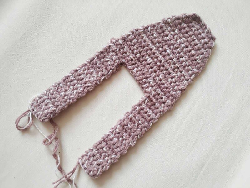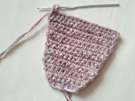Начинаем вязать с 8 воздушн. петель. Затем вяжем разворотными рядами, выполняя прибавки в начале и в конце ряда. По мере вязания примеряем верхнюю часть, чтобы определить сколько еще рядов с прибавками провязать.