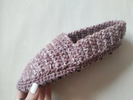 Один тапочек готов. Второй вяжется точно так же, вязание абсолютно идентичное.
