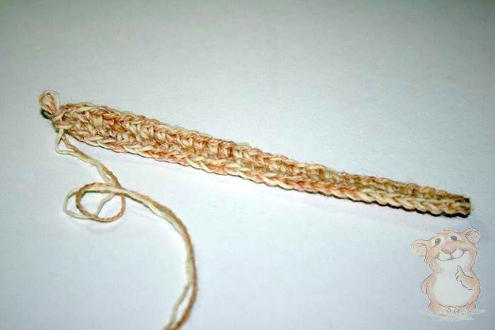 Следующий ряд наполовину обвязываем столбиками без накида, как в начале, а вторую половину обвязываем столбиками с накидом.