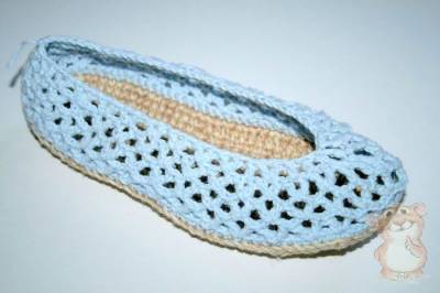 Основа тапочек у нас будет ажурной. Чтобы она такой получилась, каждый новый ряд будет у нас состоять из групп. Группа включает в себя столбик с накидом, три воздушные петли и второй столбик с накидом в ту же нижнюю петлю. Далее мы пропускаем две петли нижнего ряда и повторяем группу.