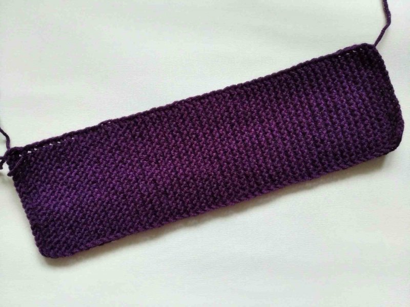 После этого закрываем петельки. Получится вот такой длинный прямоугольник.