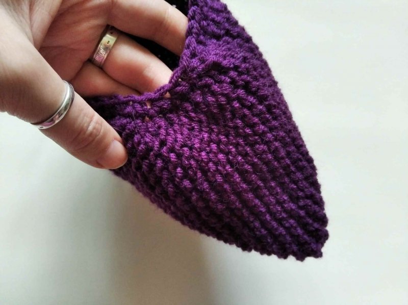 Выворачиваем получившийся мешочек. И начинаем формировать из него тапочек.