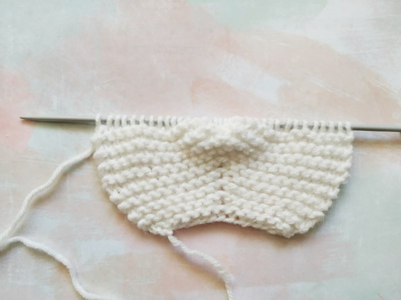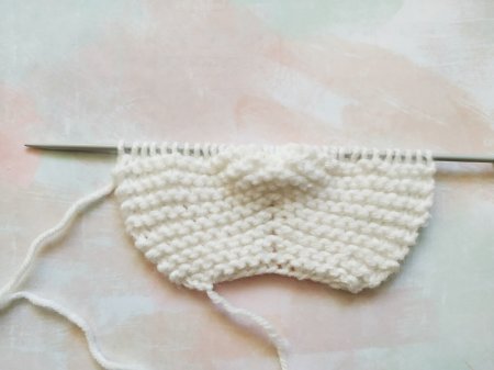 Так вязать, чередуя 2 ряда, пока на спицах не образуется 32 петли.