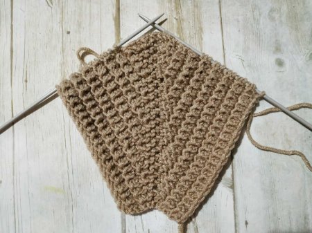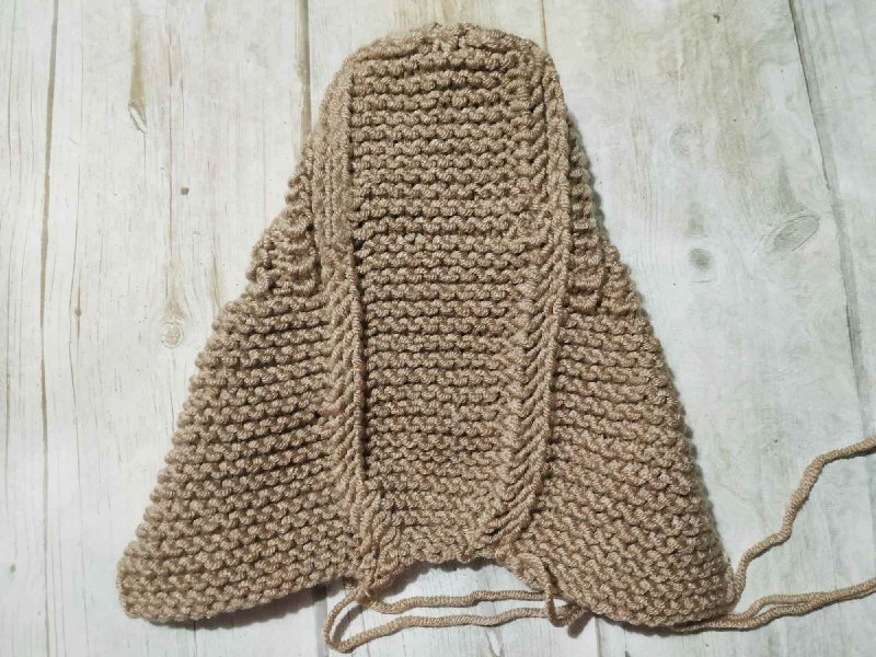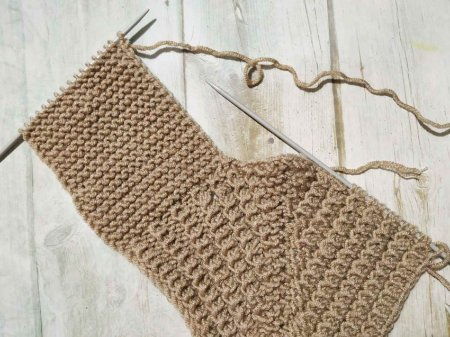 Провязываем 11-12 см платочной вязкой по одной стороне боковины.