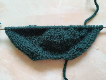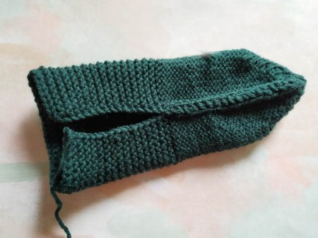 Далее лицевой ряд. Все петли лицевые. Так чередуем 11-12 см. Закрываем петли.
