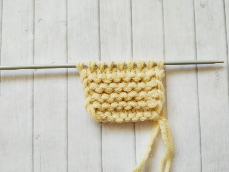 Так вяжем, пока не прибавим по 5 петель с 2 сторон. В итоге получится по 5 петель платочной вязки по бокам, а по центру лицевая гладь.