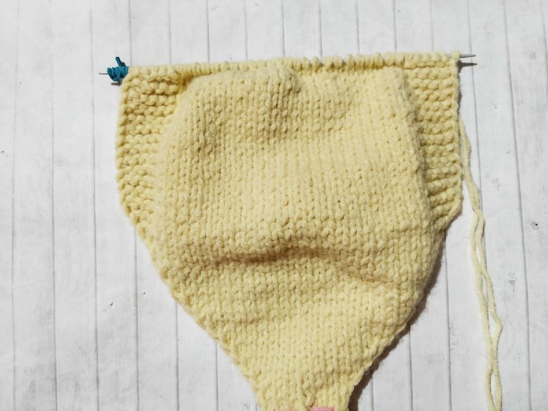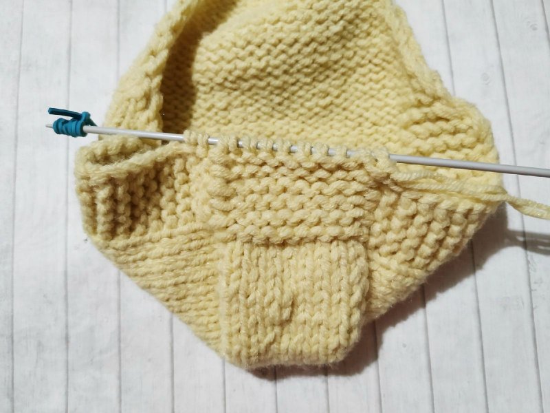Затем нужно добавить еще по 5 петель с каждой стороны, но их провязываем платочной вязкой.
