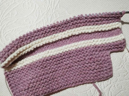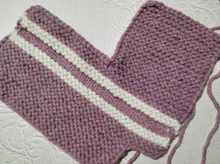 Далее еще 4 ряда платочной вязкой белой нитью. Затем 5 рядов платочной вязкой опять ниткой основного цвета.