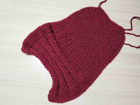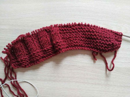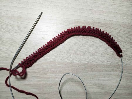 Затем снова выполняем ряд, провязывая все петли. В 4 ряду снова не довязываем 4 петли и разворачиваемся. Вяжем 5 ряд. В 6 ряду провязываем все петли, включая те, что не довязали в прошлом ряду. В 7 ряду вяжем все петли лицевыми.