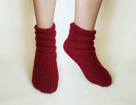 Вот так очень просто и быстро можно связать удобные носочки спицами на осень и зиму.