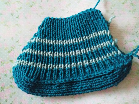 Выворачиваем следок на изнаночную сторону и сшиваем 2 стороны. По такой же схеме вяжем второй следок.