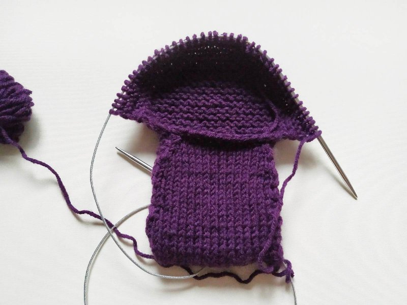 Закрываем петли. Теперь добираем петли через кромочные, чтобы связать оставшуюся часть следка. Добираем по боковой части, затем по пятке и по другому боку. Вяжем платочной вязкой 3-4 см.