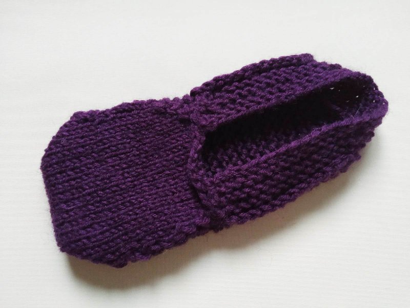 Вяжем до тех пор, пока полотно не получится такой же длины, как и стопа. стоит учитывать, что полотно, выполненное платочной вязкой, хорошо тянется. Поэтому до нужно длины детали немного не довязываем.