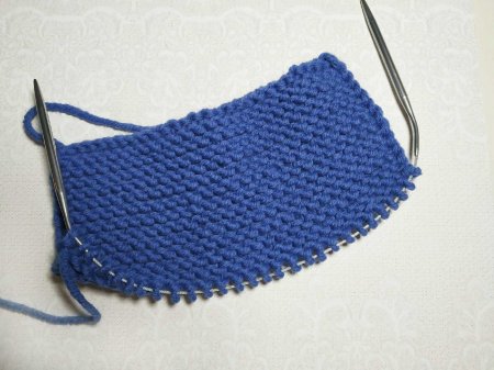 Для 37-38 размера ноги набираем 38 начальных петель. В каждом ряду кромочные будем вязать следующим образом, первую снимать, последнюю петлю вязать изнаночной петлей. Все остальные петли провязываем только лицевыми в каждом ряду. То есть, провязываем узором платочная вязка.
