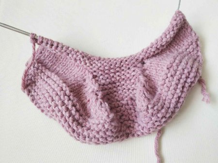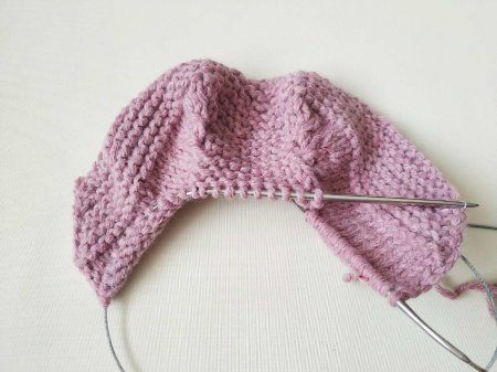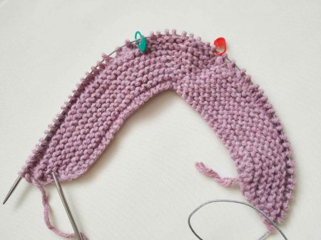 На спицы набираем 52 петли. Затем провязываем 1 ряд, связать все петли лицевыми. Теперь количество петель делим на 2. Провязываем половину ряда (26 петель) и ставим маркер. Вяжем все петли лицевыми. После маркера просто довязываем ряд лицевыми.