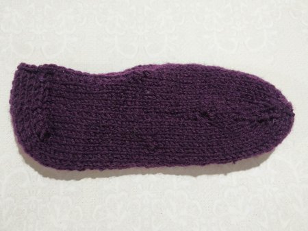 Вяжем лицевой гладью без прибавлений примерно до середины стопы, можно чуть меньше.