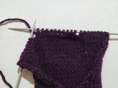 Следующий ряд не прибавляем. И так чередуем ряды с прибавкой и без них, пока не сформируем нужный размер мыска.