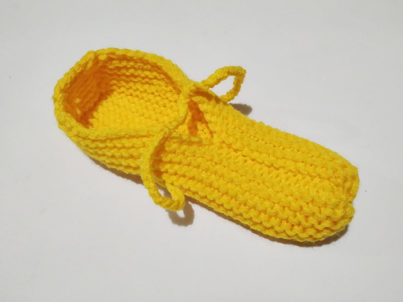 Следок готов. Можно сделать шнурок крючком и завязать его бантиком спереди, или украсить любым другим аксессуаром. Также можно и вовсе обойтись без декора.