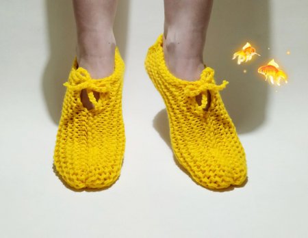 Вязать будем нитью в 2 сложения. Так тапочки получатся более мягкими. Спицы можно использовать 4,5-5 мм.