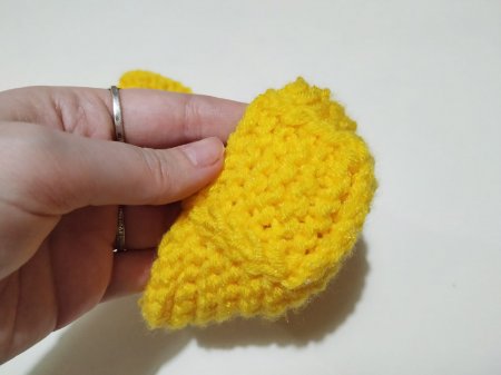 Теперь с одного конца пропускаем нить через петли и стягиваем полотно. Нить фиксируем на изнаночной стороне. Этой же ниткой сшиваем 2 стороны до взъема. Этот будет единственный шов у следков.