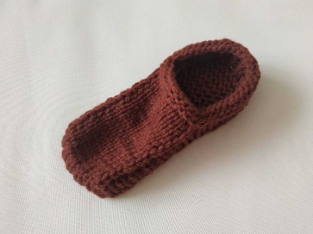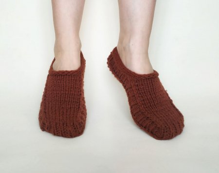 Дальше просто провязываем резинкой 1 на 1, чередуя лицевую и изнаночную петли. Вяжем до необходимой высоты. Это высота тапочка, можно просто примерять.