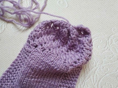 Вяжем так чуть больше половины длины стопы.