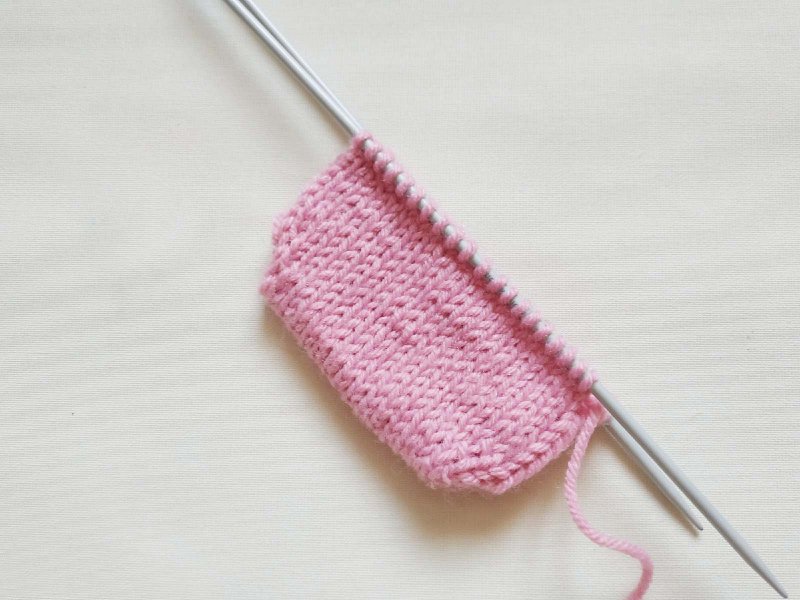Для таких следков методом «Джуди» набираем по 16 петель на 2 спицы. Далее провязываем 3 ряда по кругу. Затем делаем прибавления по бокам каждой спицы. Прибавки вяжем через ряд. Всего с прибавлением выполним 4 ряда. Далее провяжем без прибавок по кругу. От первого ряда должно быть 5-6 см.