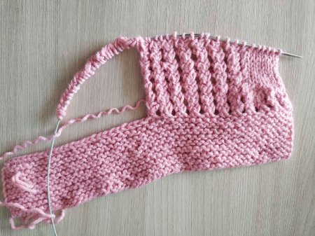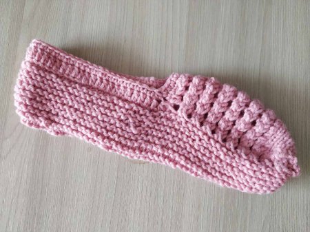 Итак, после того, как нужное количество петель будет сформировано, провязываем несколько рядов платочной вязкой. Чтобы определить сколько именно рядов вязать, нужно к половине длины стопы прибавить высоту следка, то есть боковую сторону.