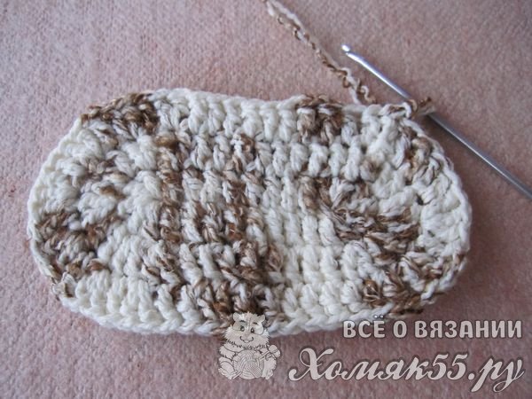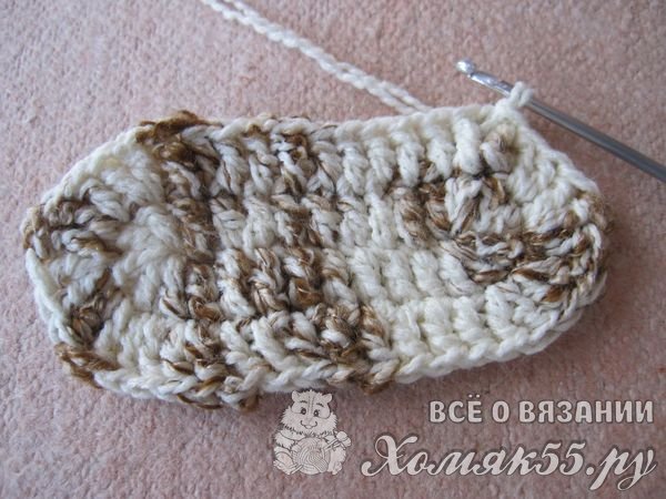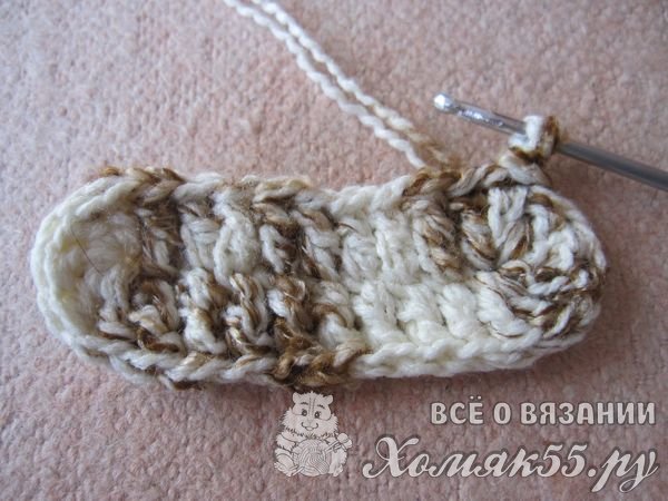 По краю подошвы необходимо набрать 32 п. Начинать и заканчивать набор следует в тех же петлях, что и пятку.