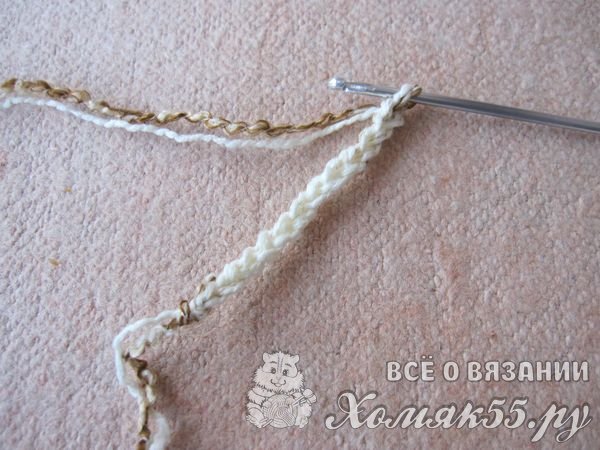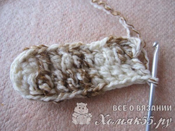 Из последней петельки нужно вывязать 5 ССН для переднего (носочного) разворота.