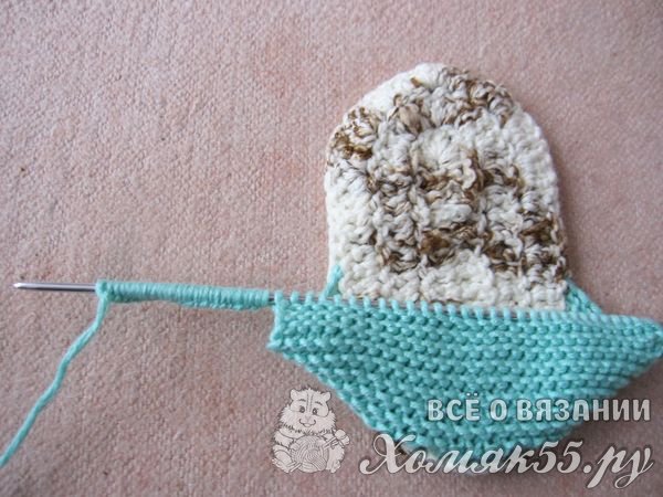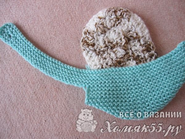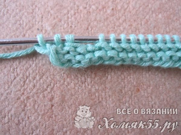В конце четвертого ряда, когда на левой спице останется 5 п., закрыть 2 п. для пуговицы.