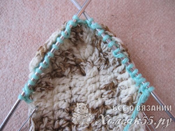 Начиная с отмеченных петель набрать со стороны пяточной части на 2 чулочные спицы 24 п.