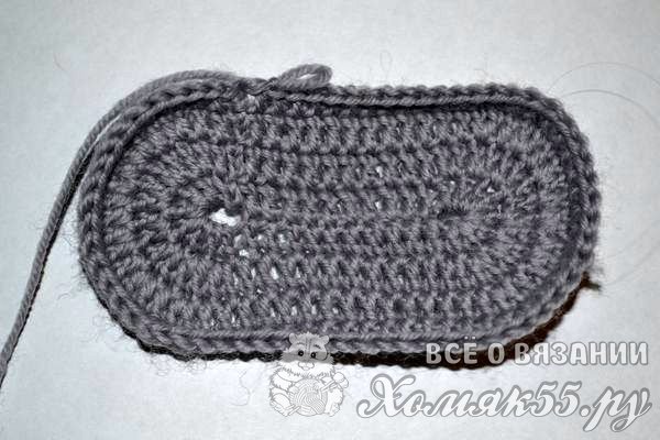 6. Согнуть подошву пополам и найти центральные 27 петель. Это будут петли мыска.