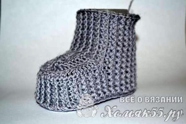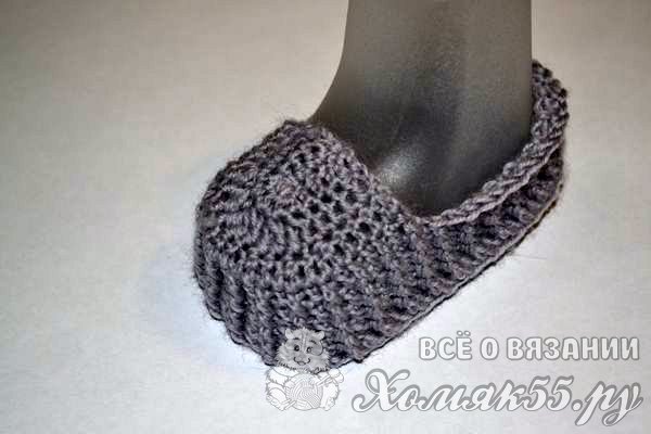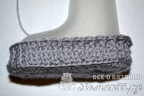 10. Начинаем вязание с середины пятки, вяжем по рисунку, чередуя ССН и рельефные ССН.