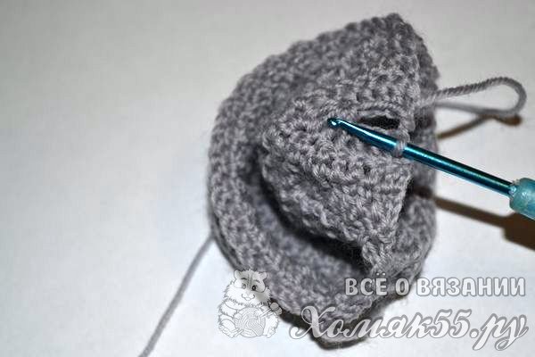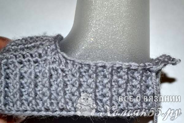 12. Вяжем вверх еще 9 рядов ССН по кругу, соблюдая очередность ССН и рельефных ССН.