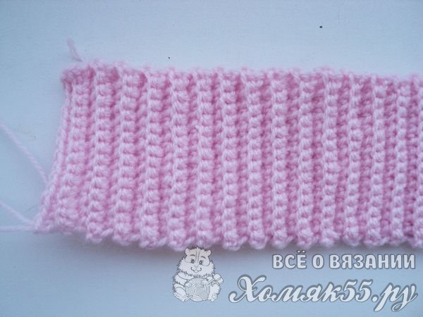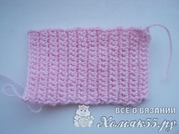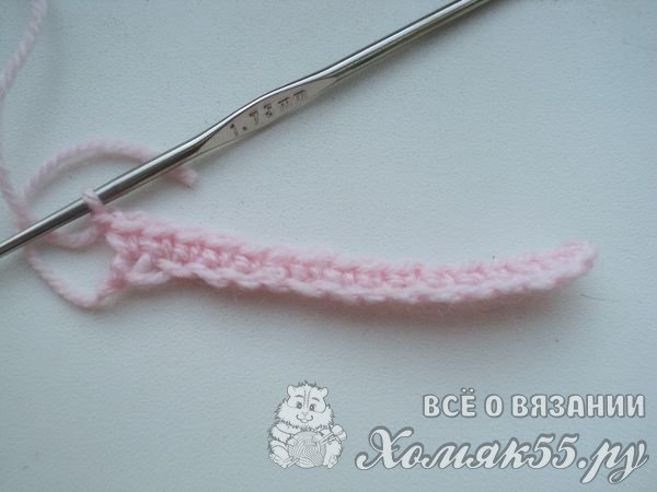 Снова делаем петлю подъема и разворачиваемся. Теперь мы будем вязать всегда разворотными рядами, провязывая в каждую из петель по одному столбику без накида. Но вязать будем, пропуская крючок только в заднюю часть петельки. Каждая петелька состоит из двух стенок, передней и задней. Заводить крючок будем не как обычно под обе стенке, а только под заднюю. Так вяжем несколько рядов. Их количество зависит от длины пинеток, от их размера.