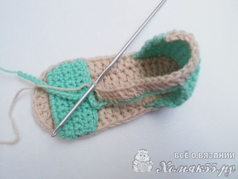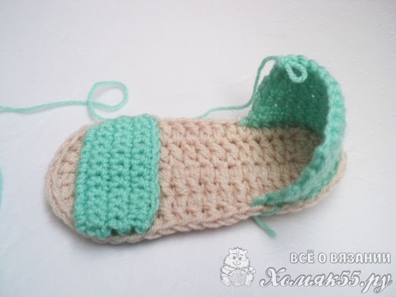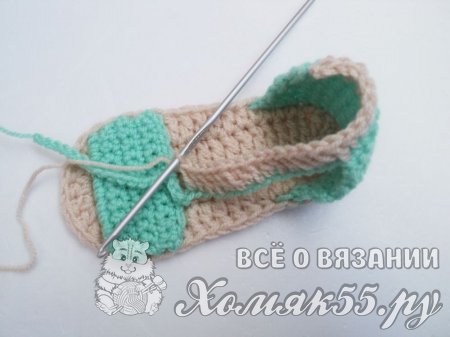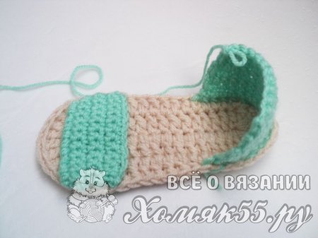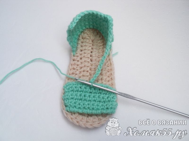 Теперь начинаем вывязывать верхнюю часть сандаликов