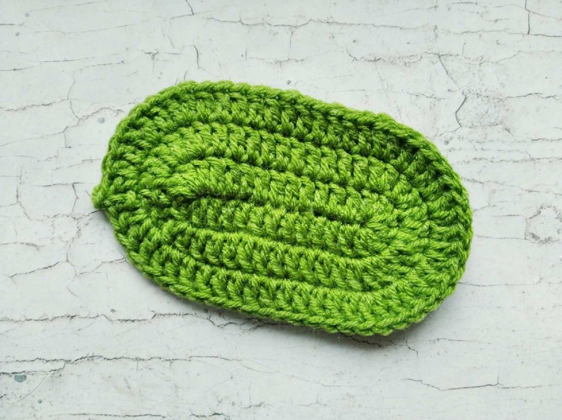 Набираем цепочку из 12 ВП. После набора петель мы будем вязать Ст СН. Но вместо первого сделаем дополнительные 3 ВП. В 4-ю петлю вяжем 2 Ст СН. И далее провязываем по цепочке 10 Ст СН. В последнюю петлю вяжем 6 Ст СН. По второй стороне снова вяжем 10 Ст СН и в крайнюю петлю вяжем 3 Ст СН. Делаем соединение.