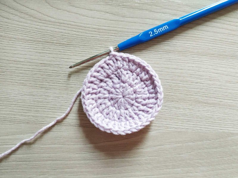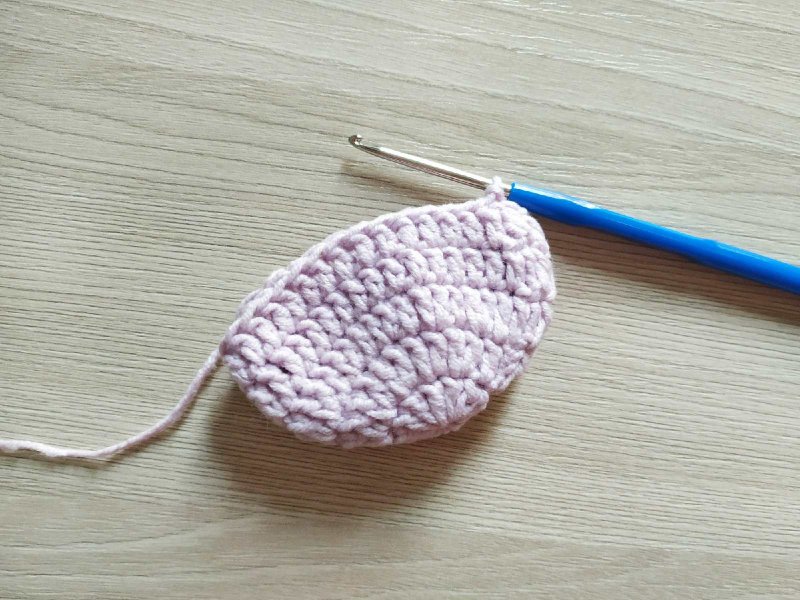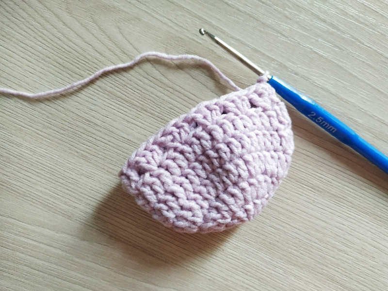 Свяжем 1 ряд, вывязывая прибавления в каждую из петель рядочка. Это нужно для увеличения количества имеющихся петель в 2 раза. Далее нужно будет прибавлять по принципу амигуруми, то есть, через 1 петлю, через 2, через 3 и так далее, пока не получится носок нужного размера. В данном случае провязан ряд с прибавкой в каждую петлю и 1 ряд с прибавкой через петлю. Это носочки на ребенка от 1 года до 1,5 лет.