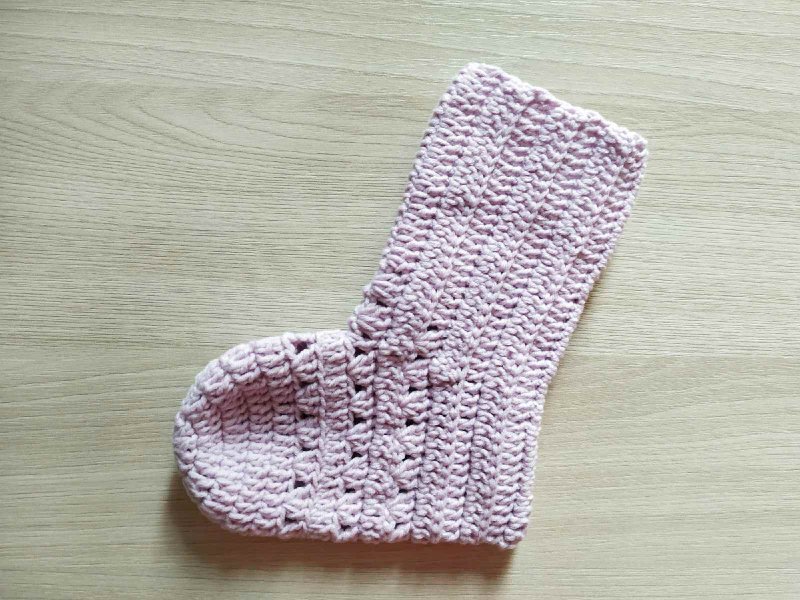 Далее провязано 2 ряда без прибавлений. Но количество этих рядов тоже зависит от размера ножки, на которую выполняется изделие.