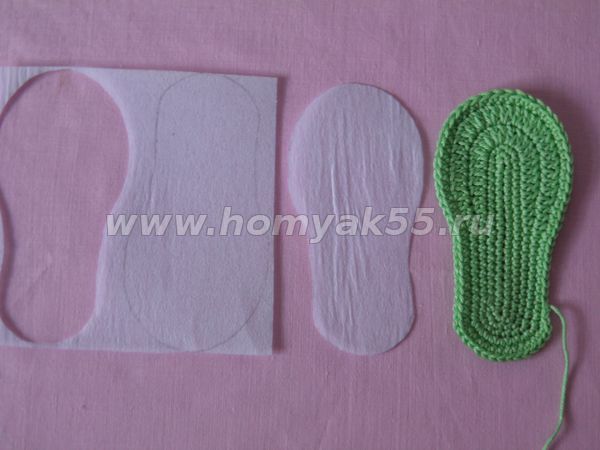 Одна деталь подошвы готова. Всего нужно связать четыре такие детали.
