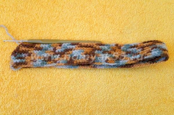 Далее 5-6 рядов вязала столбиком без накида по кругу.