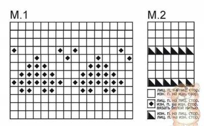 Схема M.1 и M.2 - на схемах показан узор лицевой стороны, M.1 вяжется лиц. гладью.