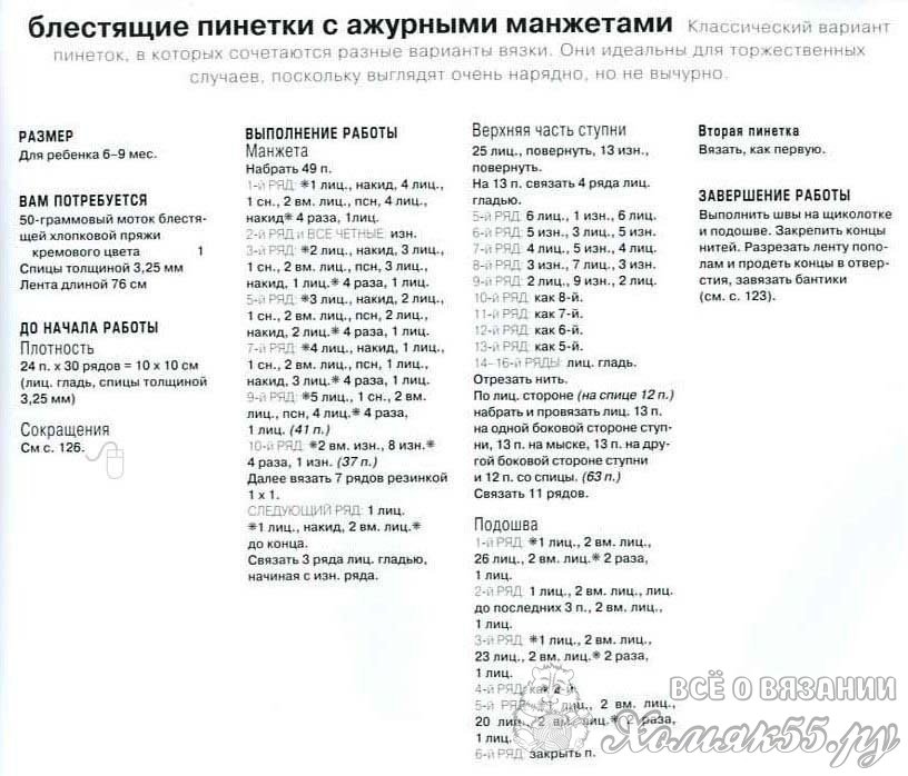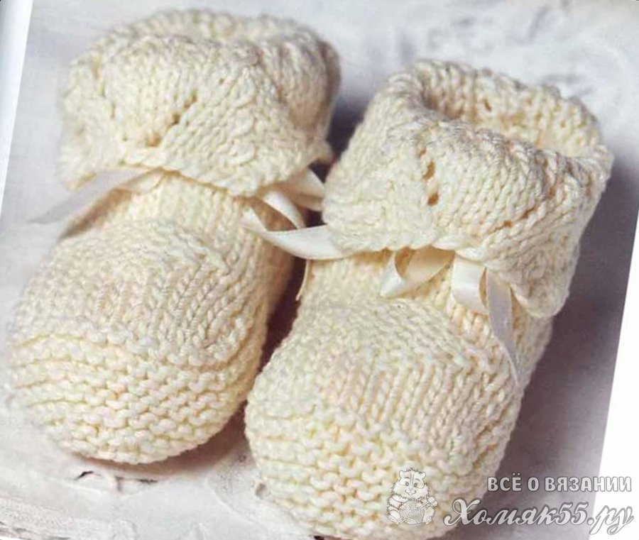 Кремовые пинетки с ажурными манжетами это классический вариант пинеток, в которых сочетаются разные варианты вязки. Они идеальны для торжественных случаев, поскольку выглядят очень нарядно.