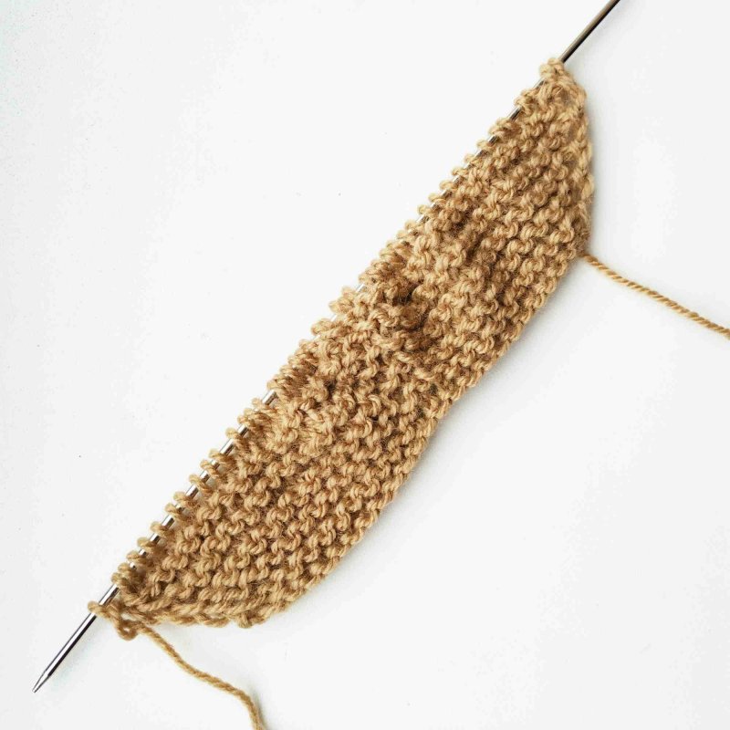 У нас 30 петель. Вяжем теперь платочной вязкой. Провязываем в лицевом ряду 10 петель. Следующие 10 петель закрываем. И довязываем следующие 10 лицевыми. Вяжем теперь только эти 10 петелек.