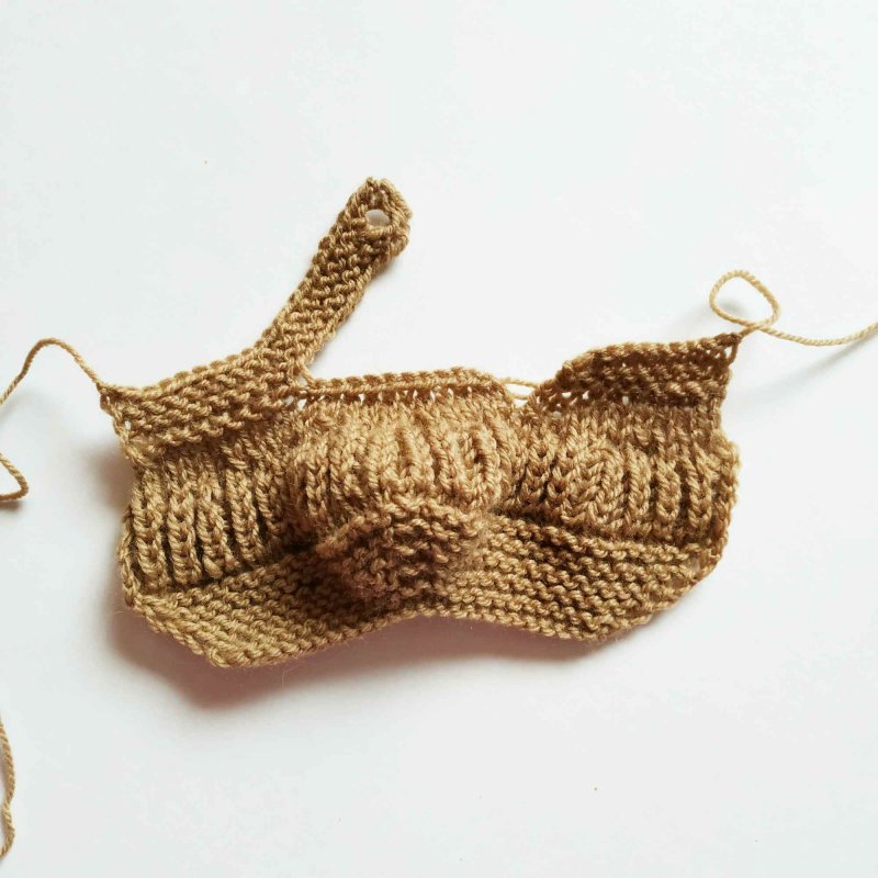 Присоединим нитку к противоположной части и провяжем 5 рядов платочной вязкой. Закроем петельки.