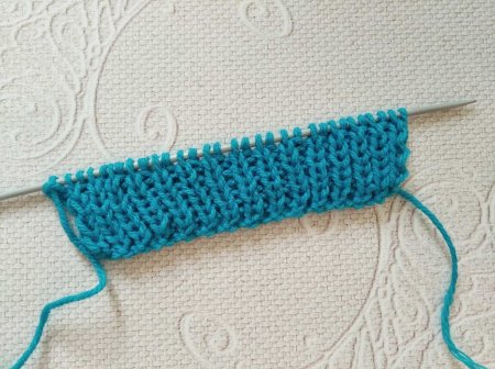 Вяжем лицевой ряд: до маркера все петли лицевые. После маркера прибавка, 1 лицевая петля, прибавка. После второго маркерочка также все петли лицевые.