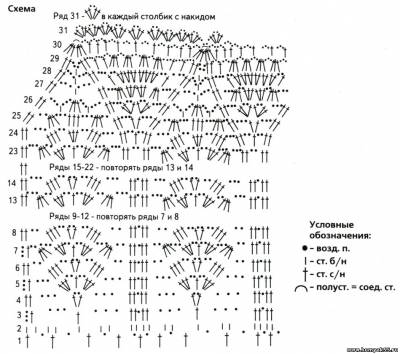 Узор "ракушка": провяжите ССН, 2 ВП, ССН.