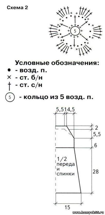 Для жаркого летнего дня этот яркий сарафанчик на завязках подойдет как нельзя лучше. Описание и схемы приведены ниже.