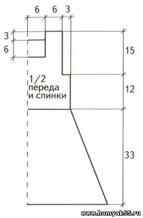 Свяжите 36 квадратов. Соедините квадраты таким образом, чтобы 14 квадратов пришлись на перед, 16 квадратов на спинку, по 2 квадрата на боковые части и по 1 квадрату на плечи.
